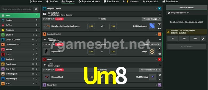 O Um8 oferece uma grande seleção de opções de apostas em e-sports com probabilidades competitivas